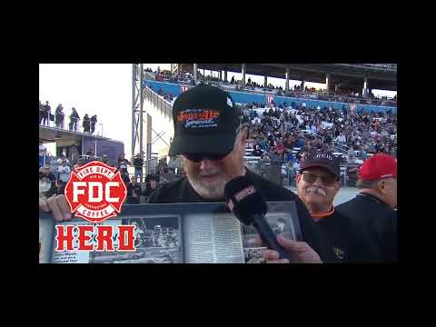 John Martin being honored by Fire Department Coffee and the NHRA for being the Fire Dept Coffee Hero of the event for the 2024 Ford Perfoemance Nationals at Las Vegas Motor Speedway